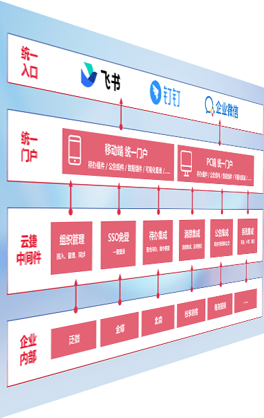 对协作平台提供支持服务,,,支持企业应用与协作平台对接,,包含组织同步、、、消息集成、、、、待办集成等。。。支持目前主流的协作平台:钉钉、、、、企微和飞书。。。。